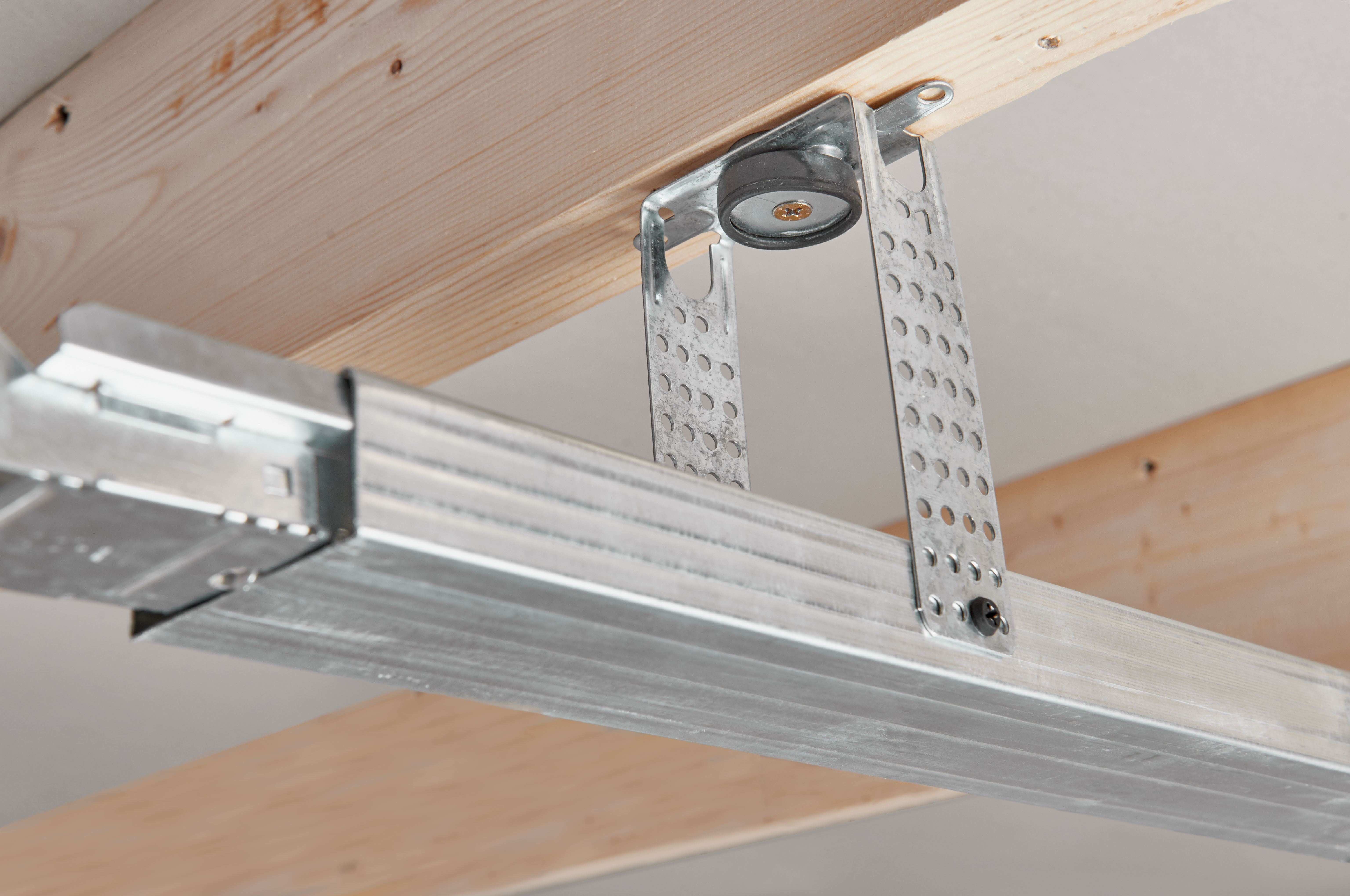антивибрационный подвес позволяет уменьшить ударный шум который передается по конструкциям. если вы живете в многоквартирном доме не на последнем этаже, то лучше взять подвес для потолочных каркасов антивибрационный производителя кнауф.