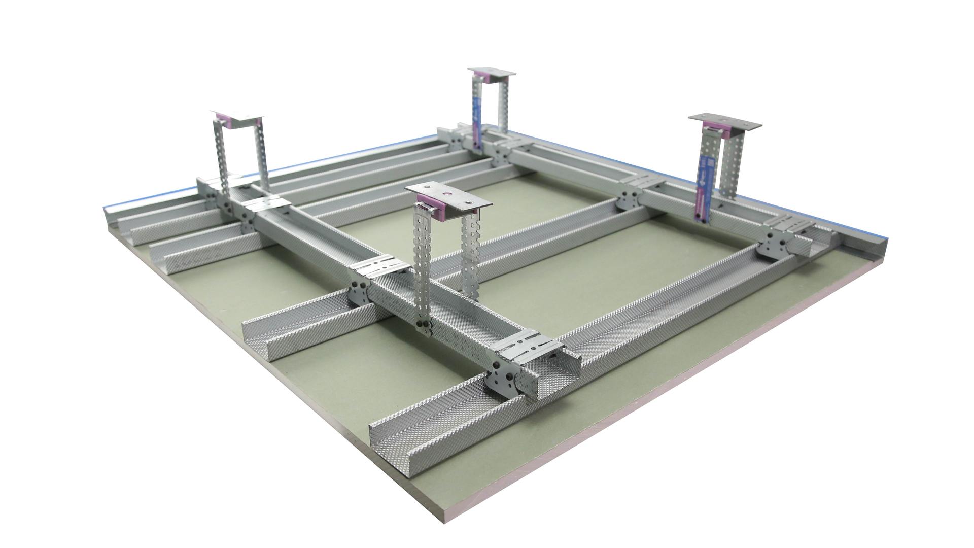 на 1 кв.метр потолка (обшивка в 2 слоя шумоизоляционными гипсовыми строительными плитами Гипрок) – 2,4 шт. подвесов;