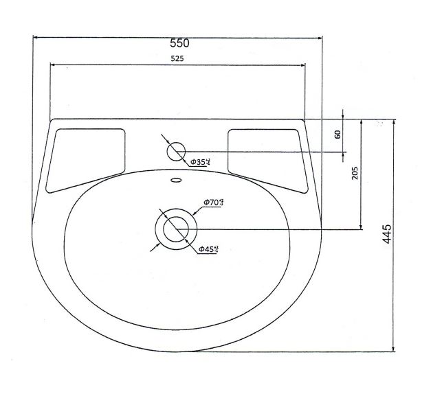 Умывальник Антей второй величины с отверстием под смеситель и переливом выполнен из санитарного фарфора.