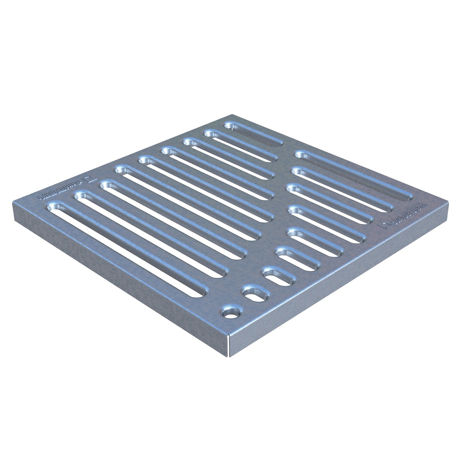 Решетка водоприемная щелевая штампованная стальная оцинкованная выполнена в виде квадратной решетки, обеспечивающая «прозрачное» закрытие входов в дождеприемники.