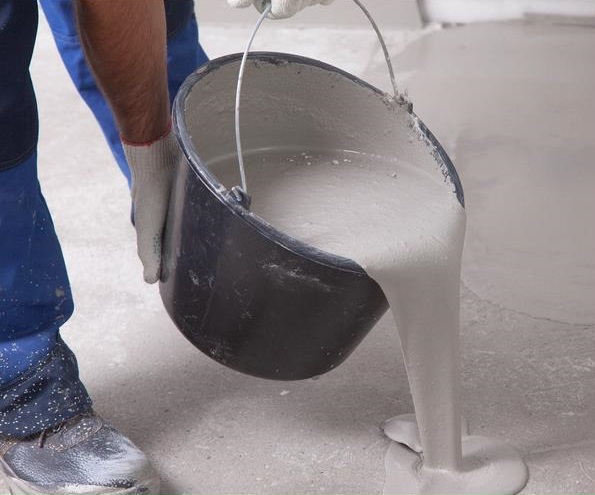Порядок работ: Для заливки Вам понадобятся краскоступы, т.к. при прокатывании валиком по ней придется ходить. Приготовленную смесь Bergauf Easy Boden нужно использовать в течение 30 минут, этого времени Вам хватит, чтобы залить и разровнять пол. Для ускорения процесса Вам обязательно потребуется напарник, чтобы замешивание в одном ведре и заливка из второго ведра проводились параллельно. Работу необходимо начинать от дальней к выходу стены. Вдоль нее выливается раствор полосами шириной 35-40 см. Каждую следующую полосу необходимо заливать так, чтобы следующая порция раствора слегка наплывала на предыдущую. При совмещении разных замесов место стыка тщательно прокатывайте валиком, чтобы не изменялась толщина слоя и не образовывались перепады. Время между совмещением замесов не должно превышать более 15-20 минут. Таким образом, постепенно двигаясь к выходу, заливаем всю комнату. При выравнивании толстым слоем после проливки всей площади необходимо довести слой нанесения смеси до уровня маяков и линии отмеченной на стене.