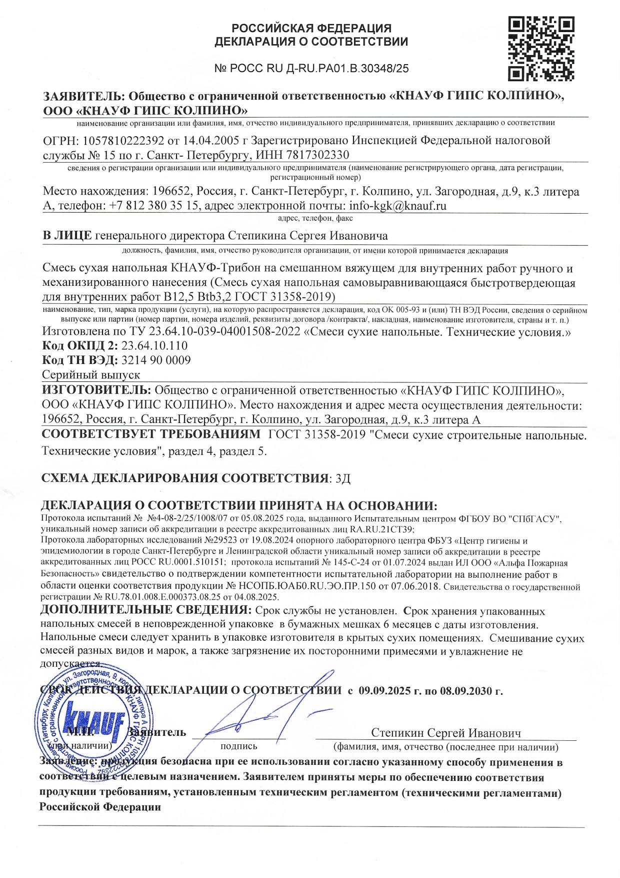 Смесь КНАУФ-Трибон фасуется в бумажные мешки, хранить в сухом помещении на деревянных поддонах. Материал из поврежденных мешков использовать в первую очередь.