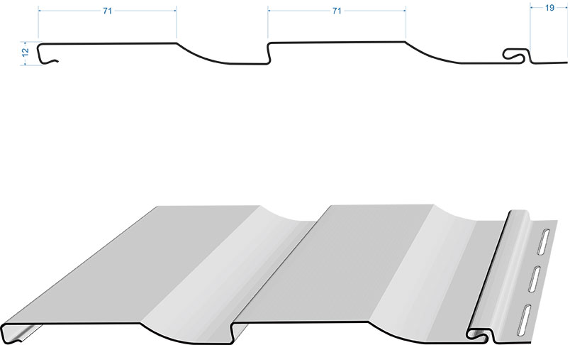 Форма сайдинга «Корабельный брус» - самая распространенная геометрическая форма, которая позволяет обеспечить оптимальную полезную площадь панели и максимально близко имитирует деревянный фасад.