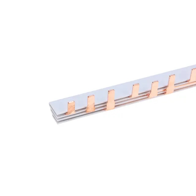 Согласно ГОСТ и европейским стандартам, шина предназначена для соединения автоматических выключателей, дифференциальных автоматов и выключателей нагрузки в трехфазных системах, что гарантирует прочное механическое и электрическое соединение, устойчивое к вибрациям и нагрузкам.