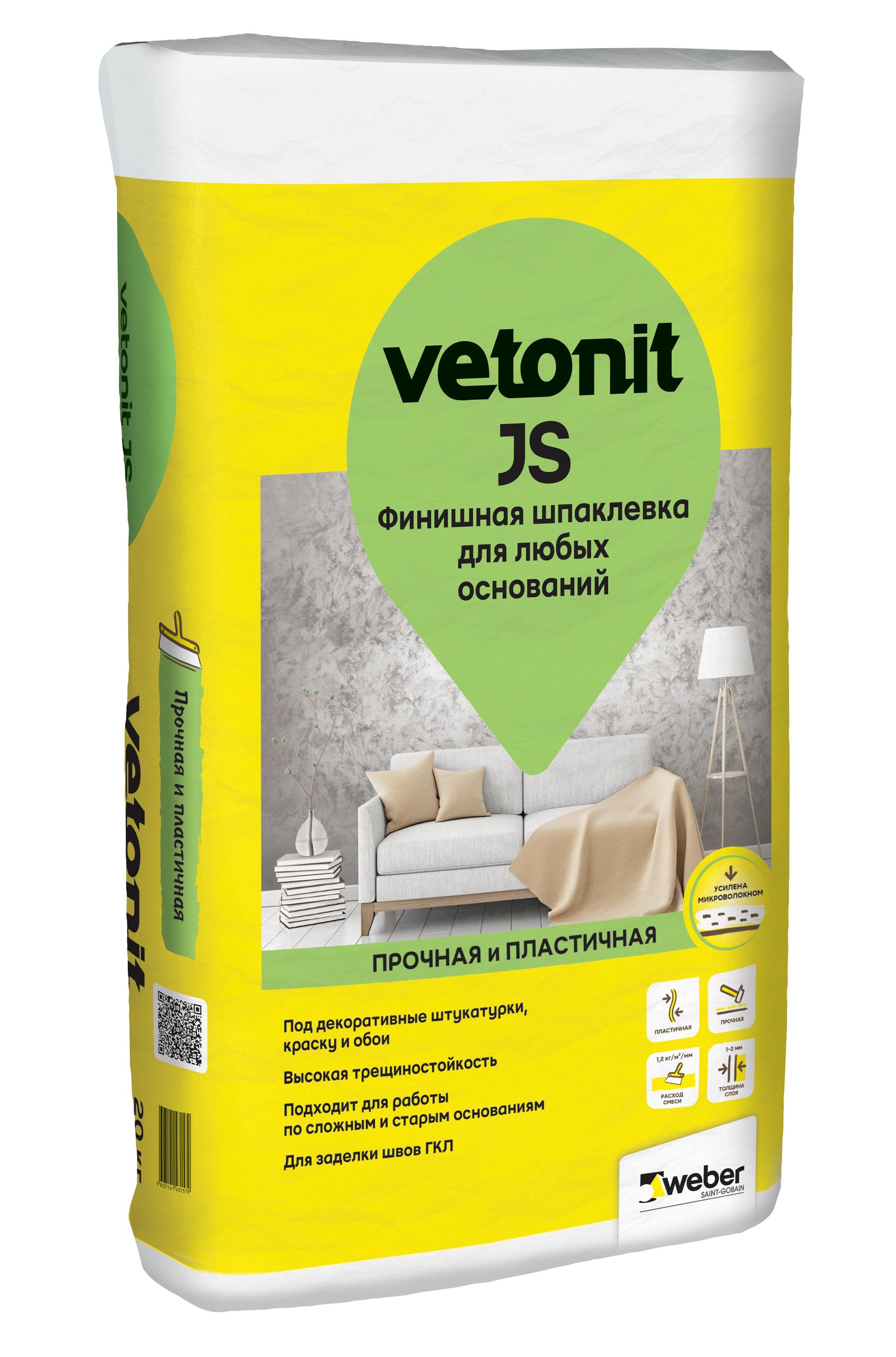 Шпаклевка Ветонит JS финишная полимерная 20кг