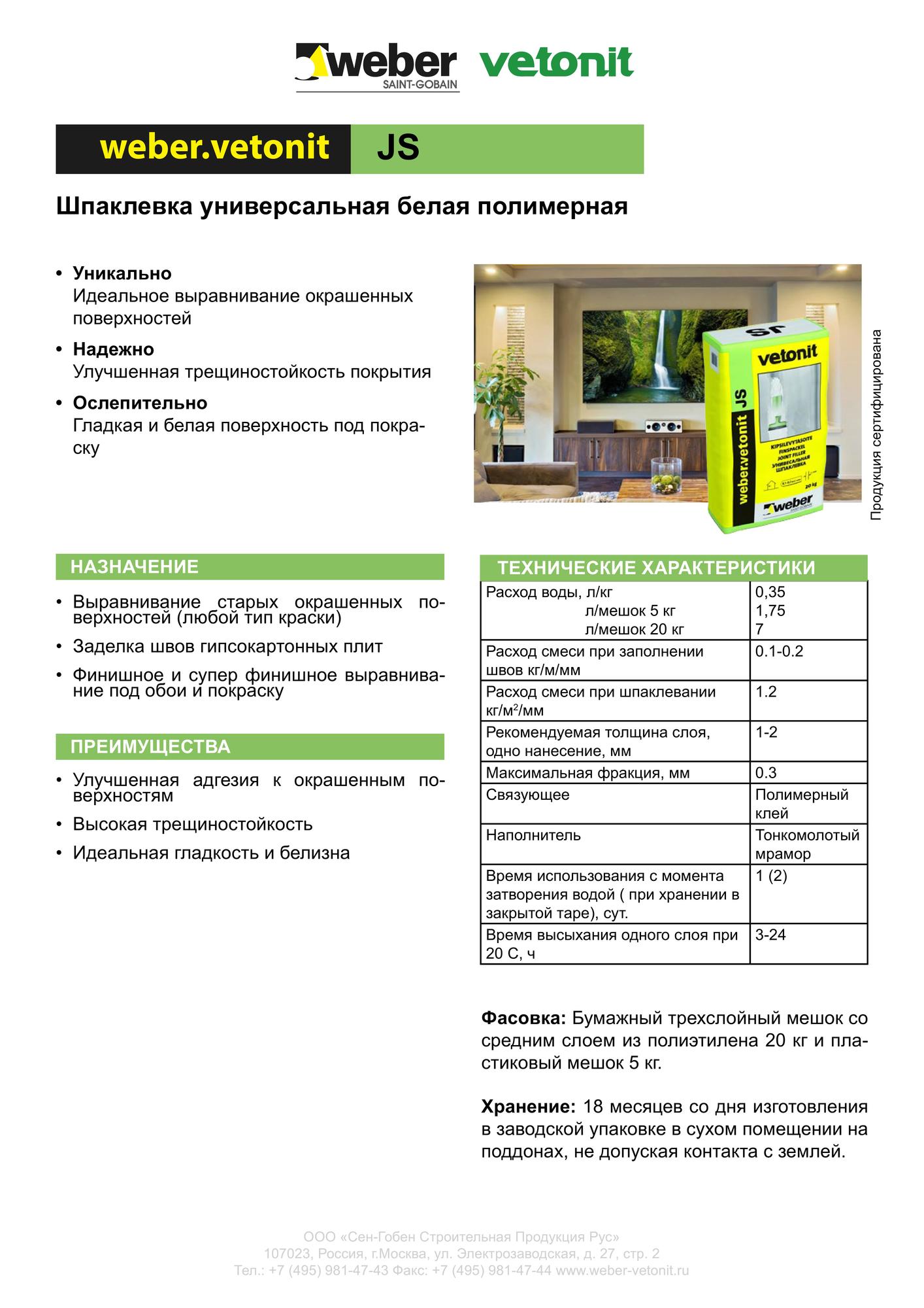 Шпаклевка Ветонит JS финишная полимерная 20кг