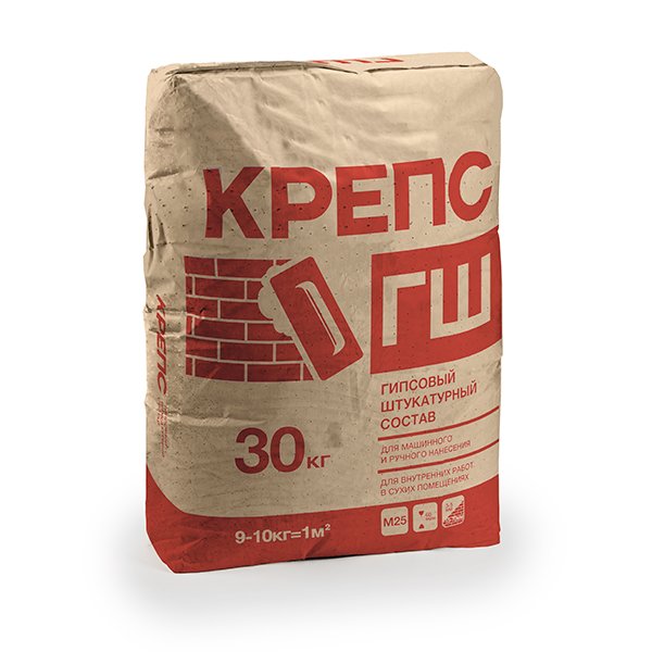 Штукатурка КРЕПС ГШ – сухая строительная смесь, состоящая из гипса, мелкозернистого фракционированного песка и минеральных добавок. При смешивании с водой образует пластичную растворную смесь, удобную для нанесения и последующего заглаживания. КРЕПС ГШ предназначен для оштукатуривания бетонных, кирпичных, газо- и пенобетонных оснований. В том числе цементных и цементно-известковых штукатурок внутри сухих помещений (стен и потолков).