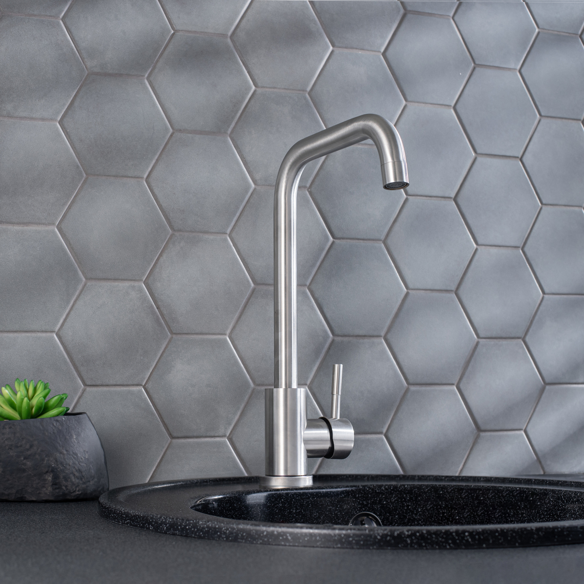 Смеситель для кухни с высоким поворотным изливом.