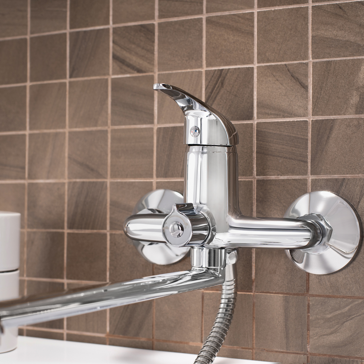 Согласно ГОСТ и стандартам сантехнического оборудования, смеситель предназначен для настенной установки с однорычажным управлением и длинным поворотным изливом, что гарантирует плавную регулировку напора и температуры, удобное направление струи, прочное механическое соединение, устойчивое к вибрациям и нагрузкам.