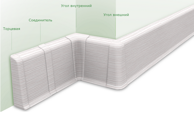 Соединитель предназначен для соединения плинтуса по длине, а также выполняет декоративную функцию.