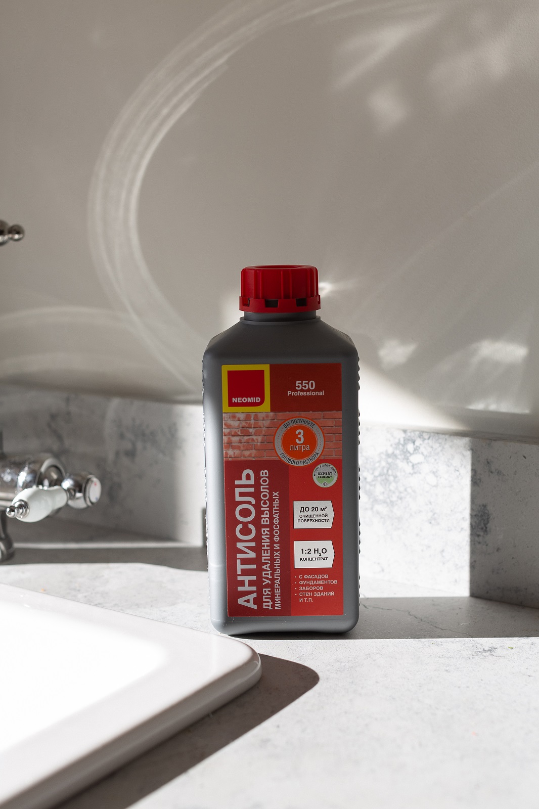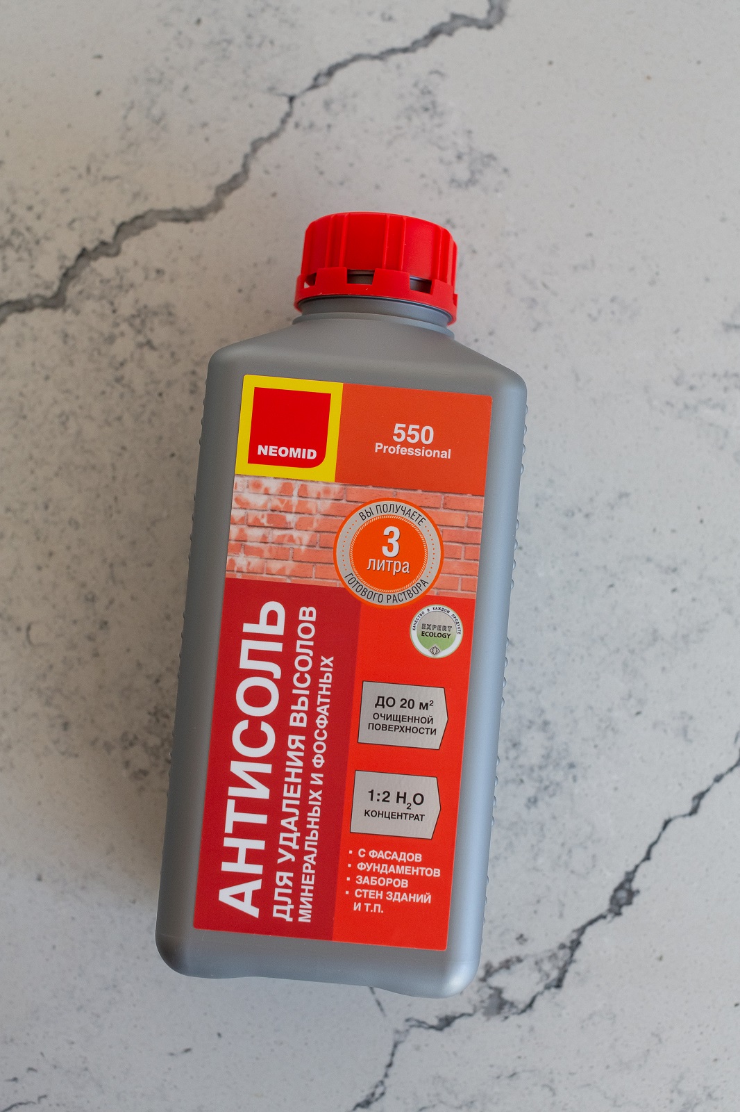 Состав для удаления высолов NEOMID 550 применяется для обработки бетонных, каменных, кирпичных, оштукатуренных и других минеральных поверхностей: стен, цоколей, заборов, декоративной отделки и т.д.
