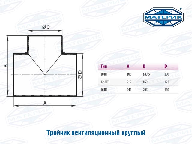 Тройник вентиляционный монтируется с элементами систем вентиляции (круглыми) диаметром 125мм