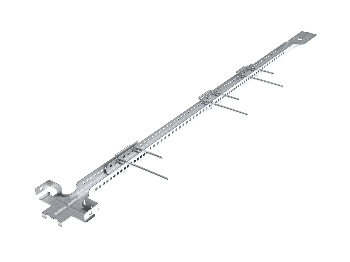 Крепление осуществляется с помощью Нониус-соединителя и Нониус-шплинта. Благодаря сплошной перфорации применение Нониус-удлинителя позволяет достигнуть более точной нивелировки высоты потолка.