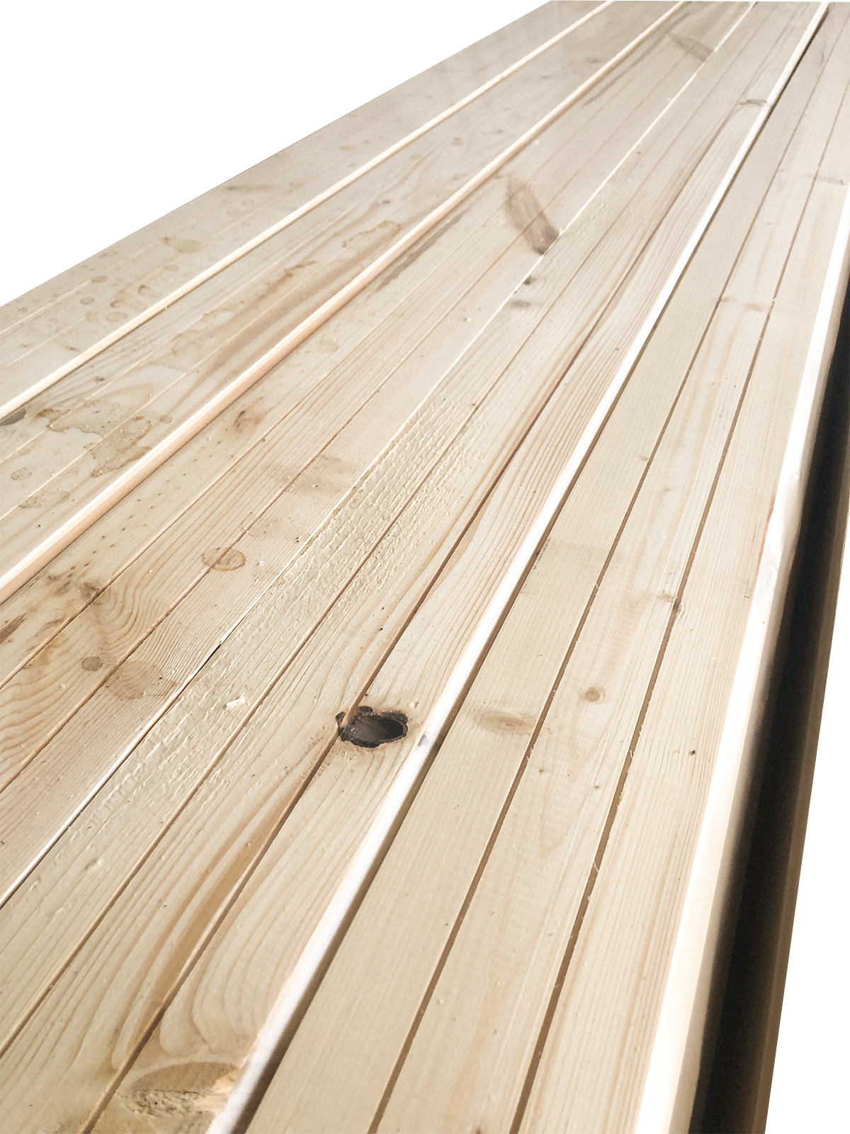 Пройдя камерную сушку, доска приобретает влажность, не превышающую 18%, что в дальнейшем гарантирует минимальную усадку материала. После строжки и фрезеровки доска приобретает правильные заданные геометрические размеры, гладкую поверхность, шип-паз на торцах и продольные вентиляционные пазы на тыльной стороне доски.