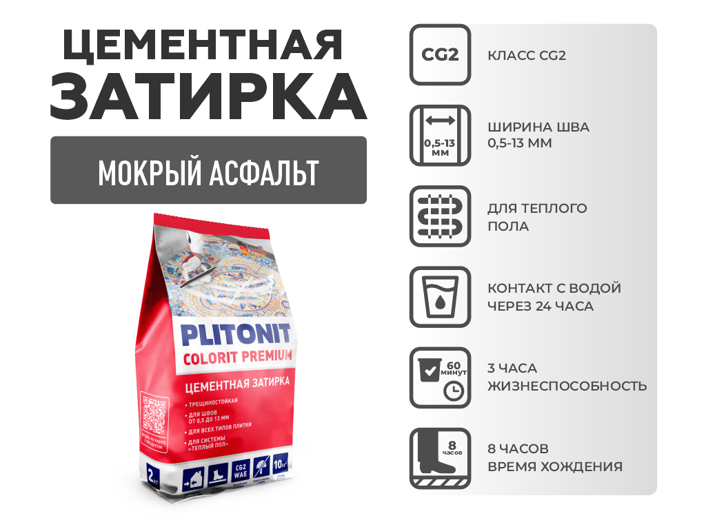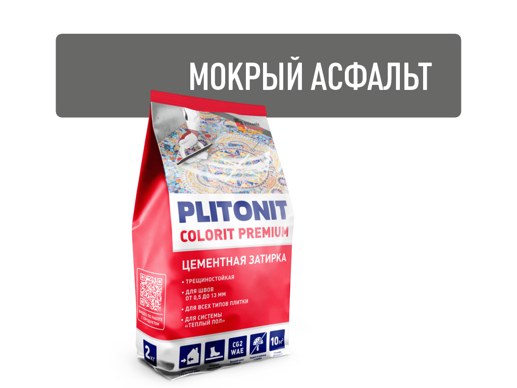 Затирка цементная Плитонит Colorit Premium мокрый асфальт пакет 2 кг