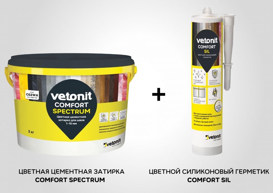 Цементная цветная затирка для швов 1-10 мм. Подходит для поверхностей из мозаики, керамической, керамогранитной и стеклянной плитки, натурального и искусственного камня. С помощью специальных добавок в составе, затирка долговечна и ее можно использования внутри и снаружи зданий, в сухих и влажных помещениях и в бассейнах. Угловые и деформационные стыки (стена-стена, стена-пол) следует заполнять цветным силиконовым герметиком vetonit comfort sil цветом, соответствующим цвету затирки.